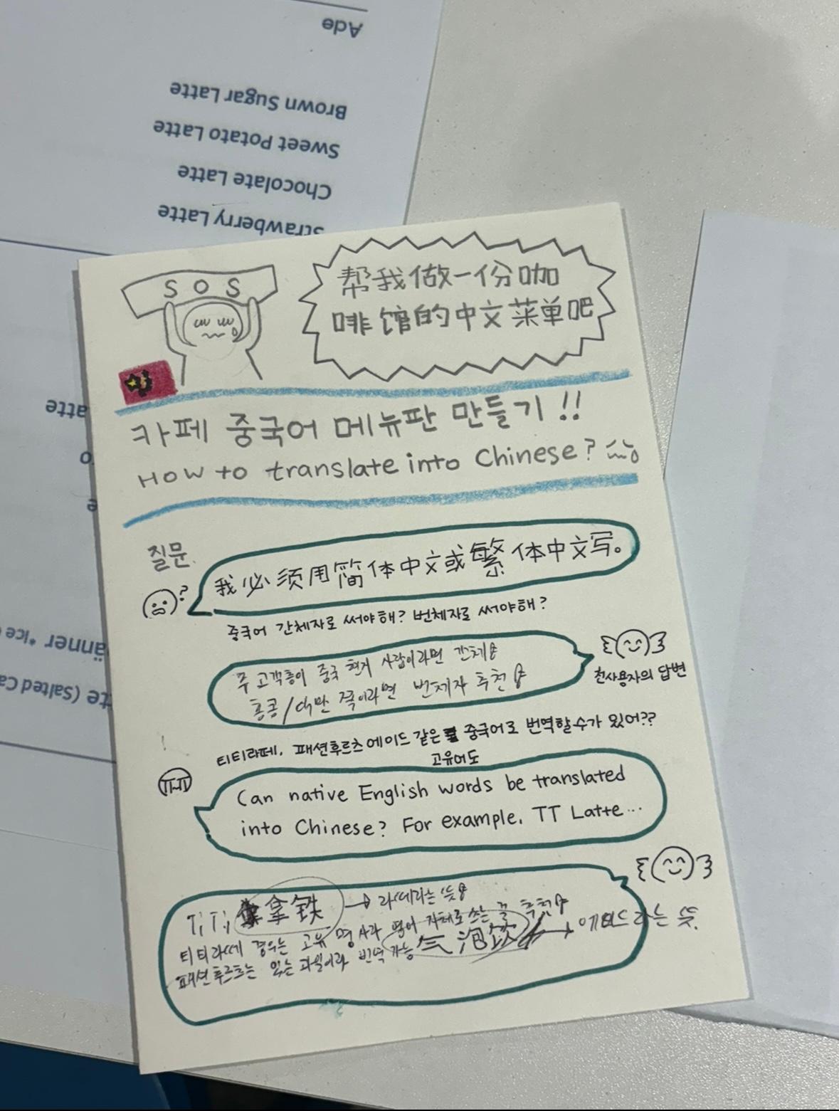 📷 (4-5/10)용자들과 카페 중국어 메뉴판 만들기💙